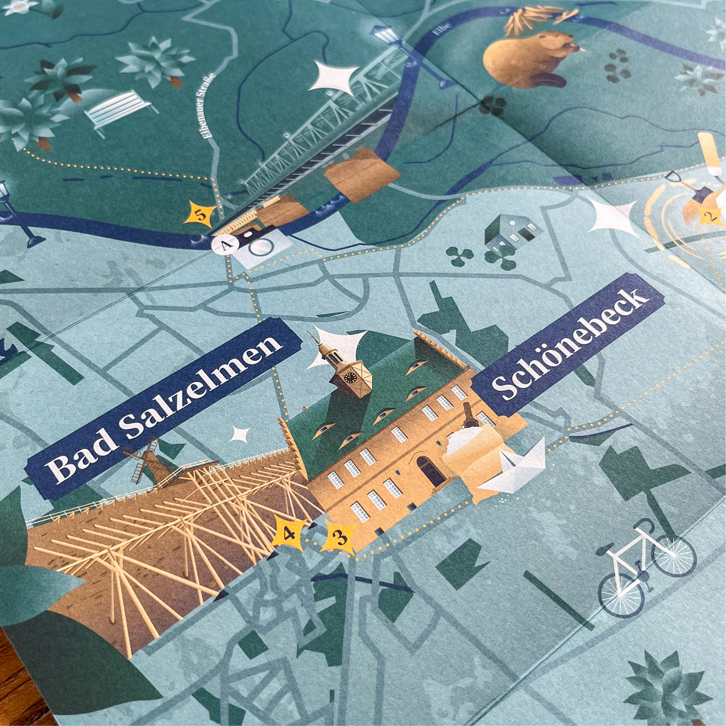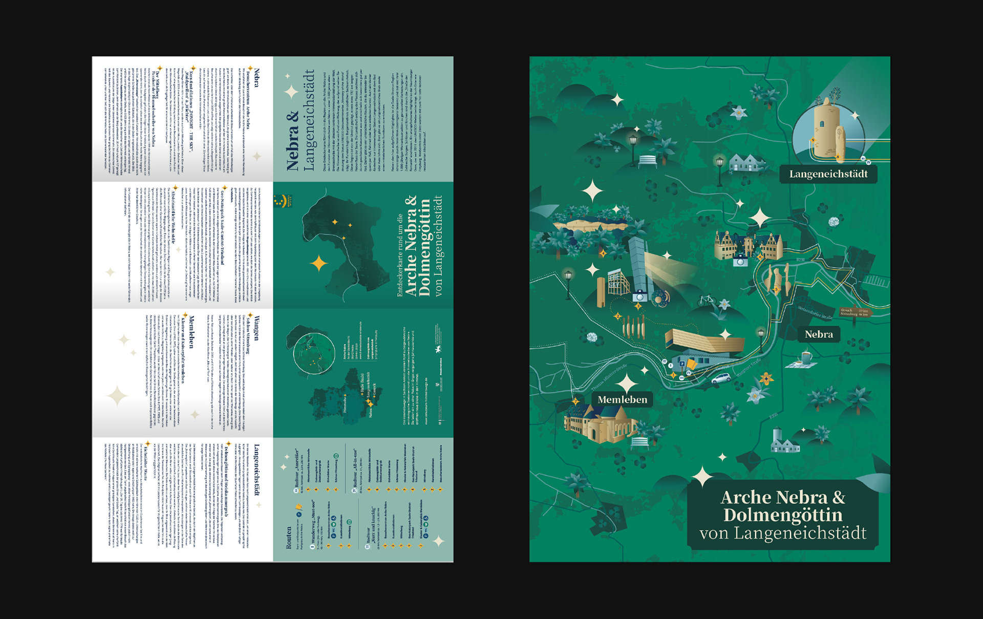 Die Entdeckerkarten stellen die Umgebung der Himmelswege-Stationen Arche Nebra/Dolmengöttin von Langeneichstädt, Sonnenobservatorium Goseck, Ringheiligtum Pömmelte und das Landesmuseum für Vorgeschichte Halle vor.